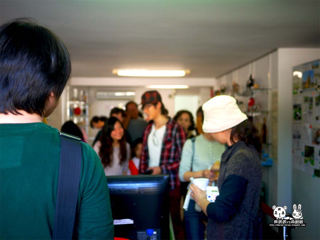 後來朋友快排到結帳的地方時,熊趕快拍一拍紀念一下(十足的觀光客),沒想到外頭還有不斷湧進的遊客…恩…他們的門應該要擴展一下,否則一直堵塞住…冏,如果是夏天在裡面,又沒有開冷氣的話,會有點像是沙丁魚聚集的地方(不知道為何…突然有這種念頭)。