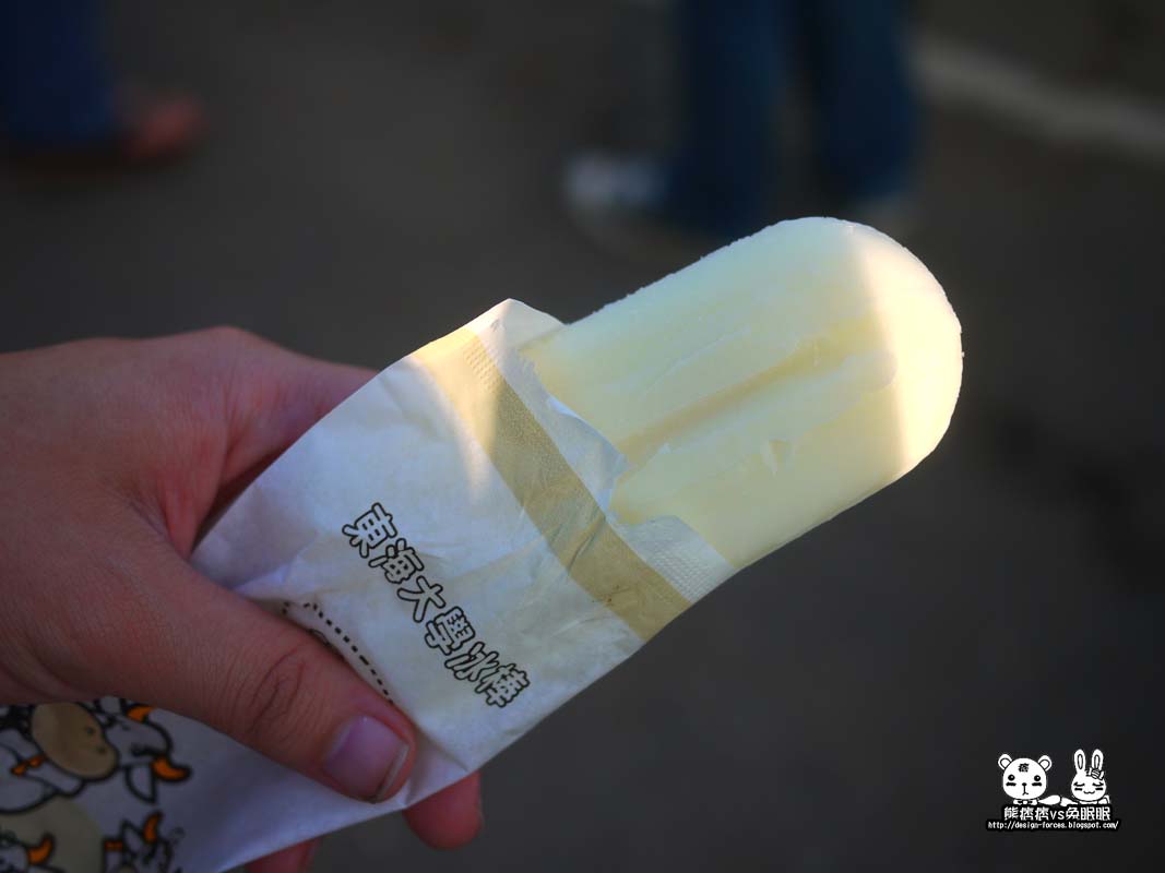 個人還是比較喜歡金門的青草地鮮乳冰棒,金門的鮮乳冰棒咬起來,中間部分有點小酥脆的口感,帶有些鮮奶味,東海的冰棒與金門相比,味道上差一截比較清淡(可能是熊痞痞的味道被慣壞了),整體上比較不推這個,反而推薦朋友吃得冰淇淋,恩…那才是王道阿XD~~假日有空的朋友,也可以親自去嚐試看看唷^_^。
