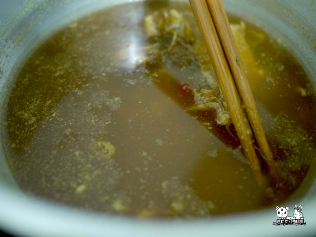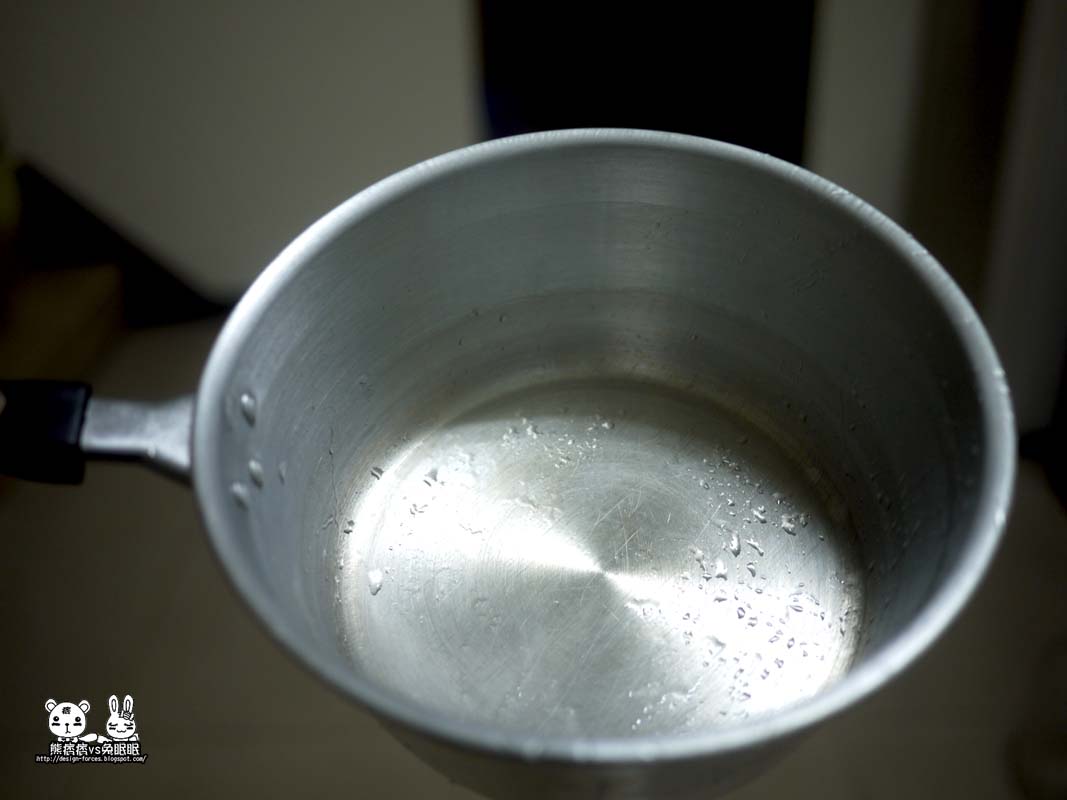 之後熊痞痞再將牛肉湯頭倒掉,放下些許水,擠下一點點的洗碗精。
