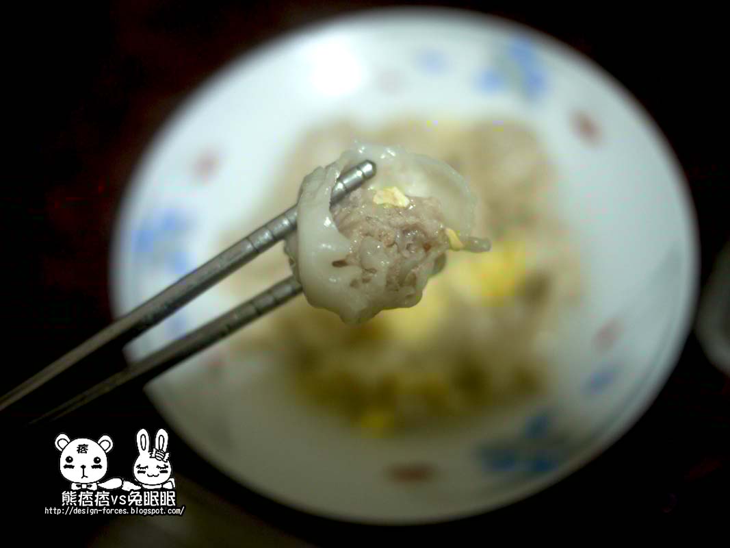 內餡的肉也很有多,不會像有些水餃才包一咪咪的肉…肉吃起來很紮實,熊痞痞蠻喜歡的。