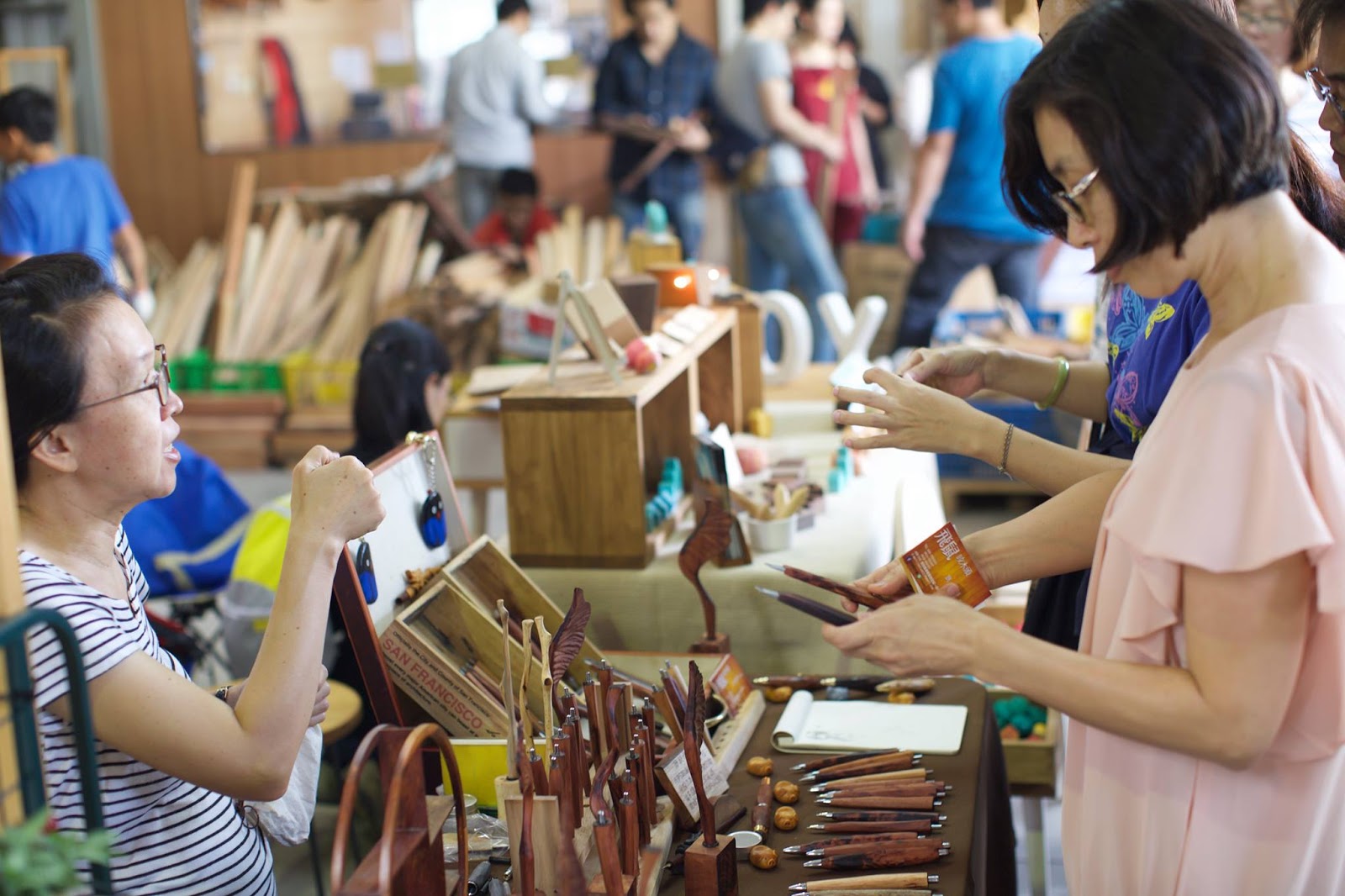 每一次的市集都很熱鬧,雖然都是木頭的作品,但創作的多樣性卻超乎想像,每攤的特色幾乎沒有重複的。