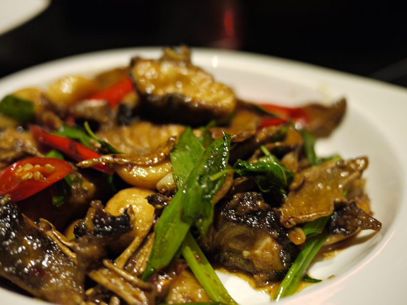 這是三杯鱘龍魚(300元),骨頭是軟骨,可以直接吃下去,因為是做成三杯的,口味略重並帶著淡淡的九層塔香,還不賴。