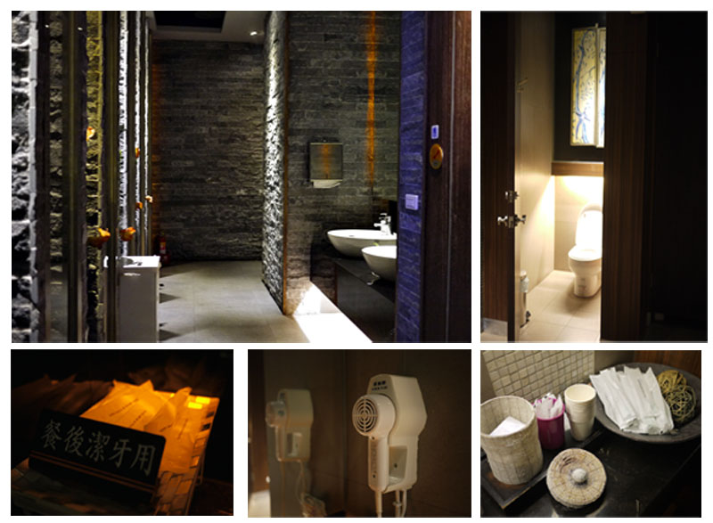 天啊?看到廁所我都懷疑這邊真的是餐廳嗎?還是偽飯店啊?怎麼還會有吹風機?甚至連女性用品都有(右下),這也太貼心了吧!