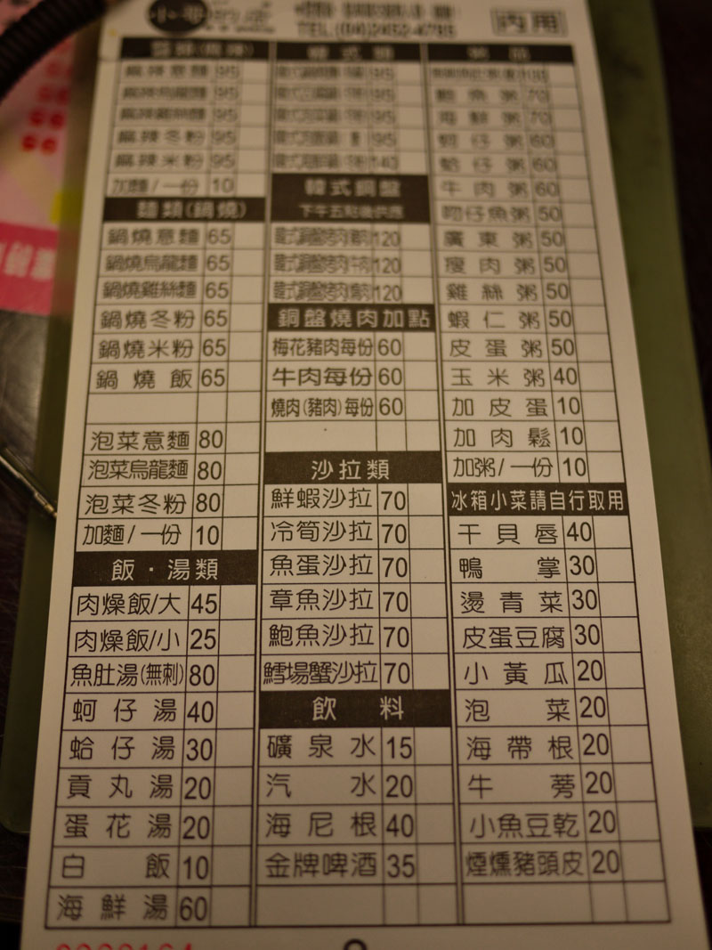 這是他們的菜單,熊點的是鍋燒意麵65元,朋友好像是點泡菜意麵吧?那時候看到別桌的人,桌上都是大碗的麵,沒想到等我們的上來後,有種小傻眼的FU!