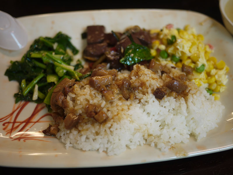 點完餐後,可以選擇三樣配菜,在淋上肉汁,這邊熊要特別誇一下老闆的服務態度,真是好到沒話說,同事因為減肥的關係,一開始也不知道會有肉汁,所以當服務生淋下肉汁後,只好尷尬的問服務生說:「他可以不要肉汁嘛!」,沒想到老闆聽到直接跑過來,就把淋過肉汁的飯拿掉,再重新添一碗白飯給他,真是有魄力的舉動!讚!