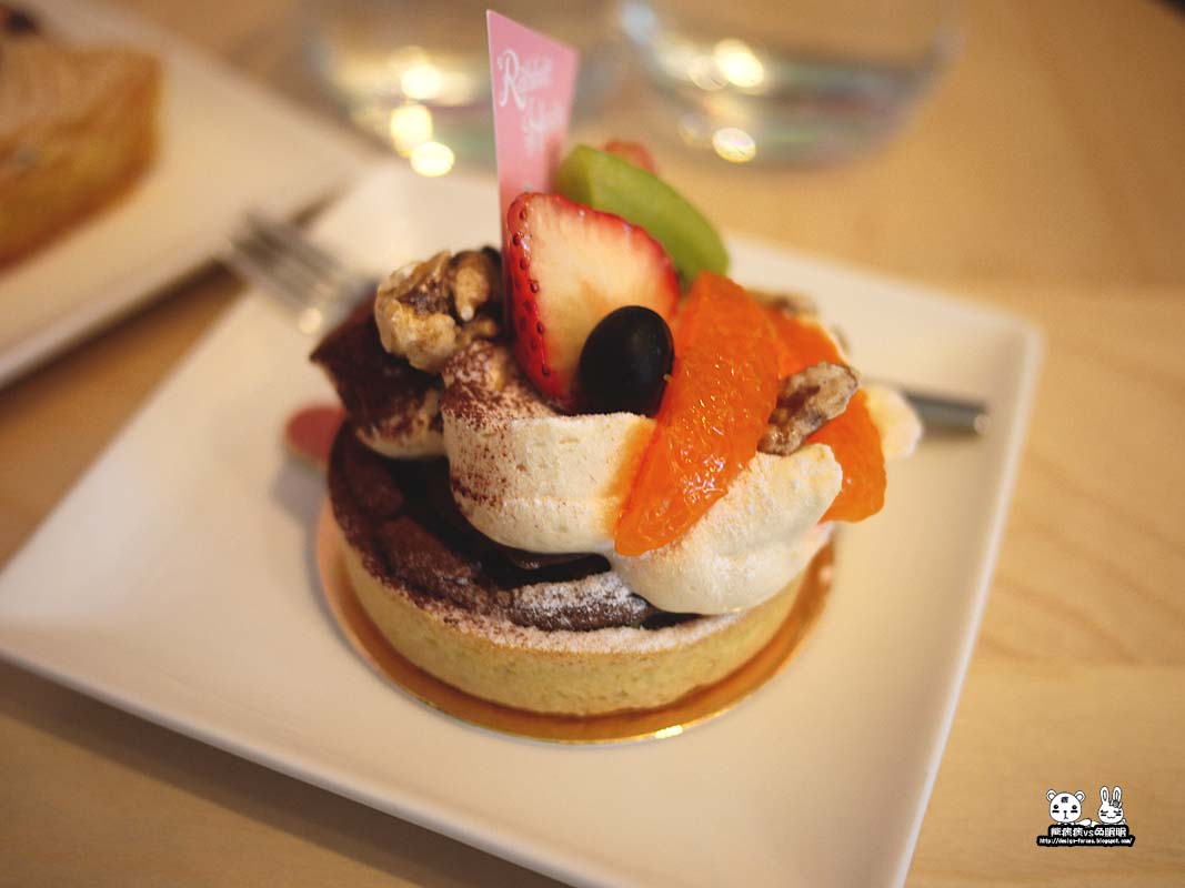 記憶中這是玫瑰覆盆子蛋糕的樣子,上面的草莓很好吃,下方的那個味道很重,有點微酸的口感,女生應該會很愛吧。