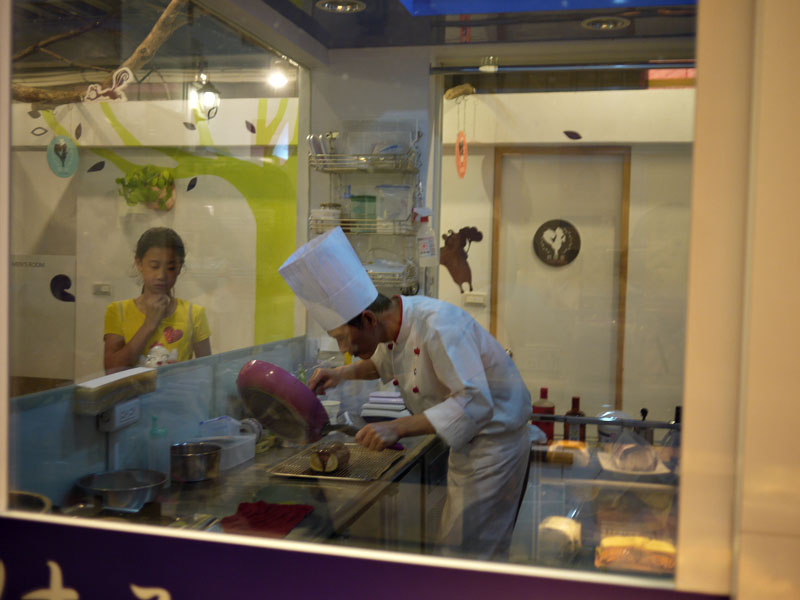 傘甘甜點工坊的工作環境是透明公開的,在這可以完整的看到製作過程,廚師對於一些食材的選擇上,也會結合在地化的特色,其中一個百香果蛋糕還曾經獲得大獎呢!