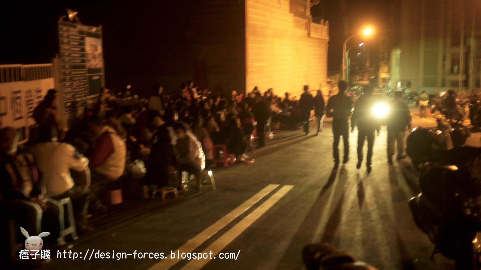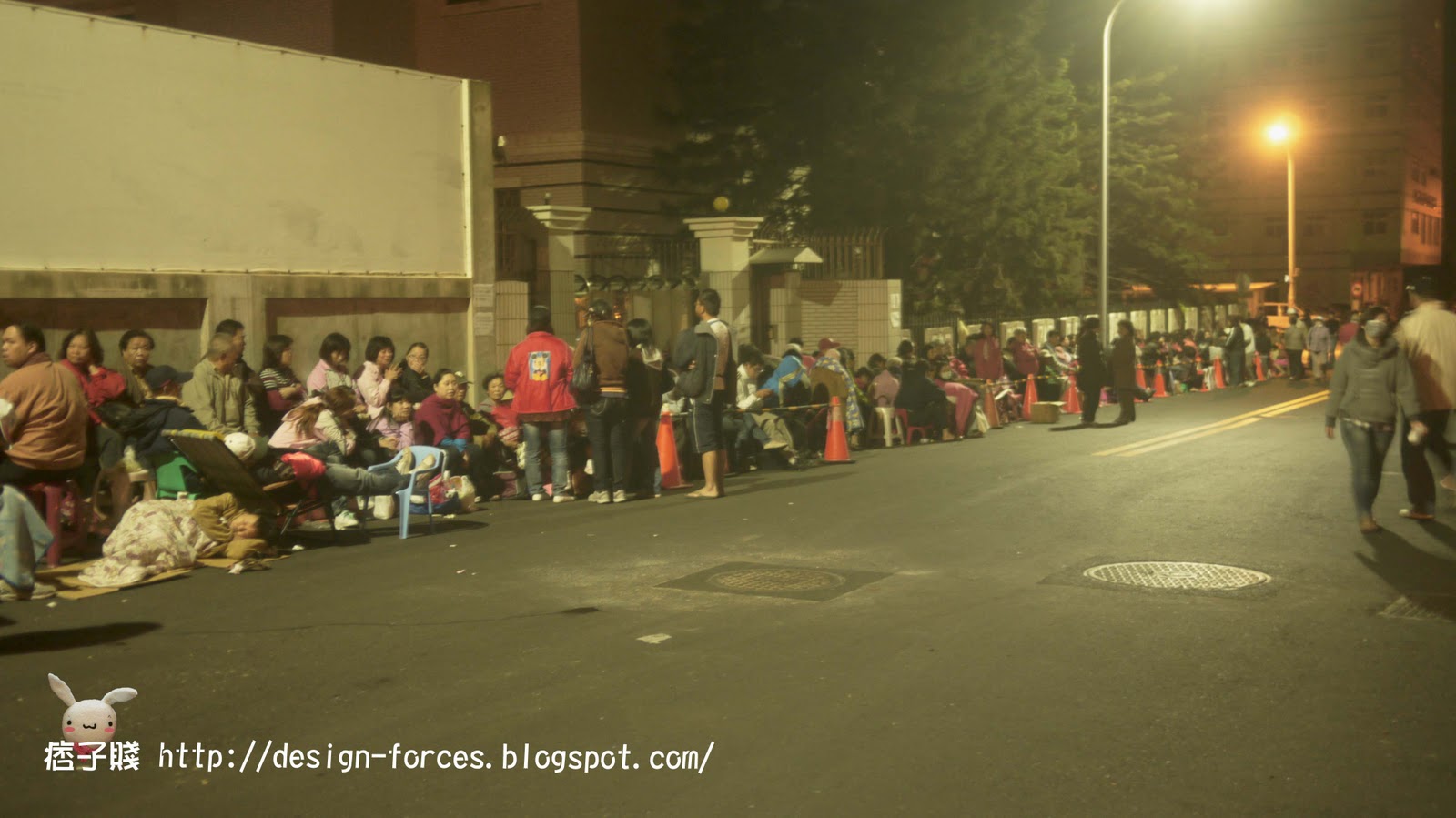 最後已經繞到很後面了….沿途看到有人帶棉被睡覺、打毛衣、打牌…千奇百種的。