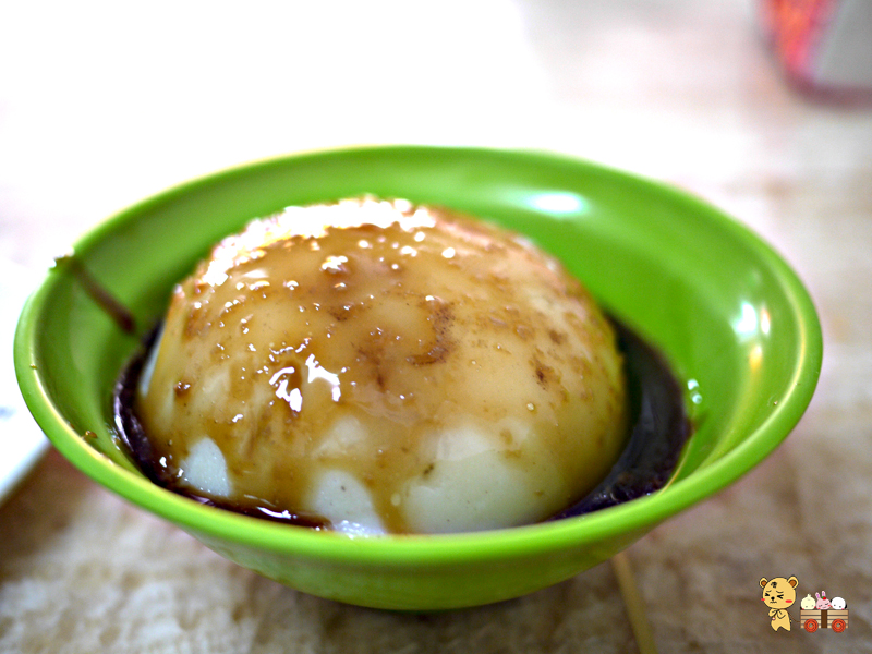 最後就是今天的主角--被淋上蒜泥醬油的光頭(大誤),好啦!其實他是古早味碗粿,熊也是第一次吃到這種東西,真的有點像是麻吉的感覺,一開始上菜時,覺得這道菜的樣子有點好笑。