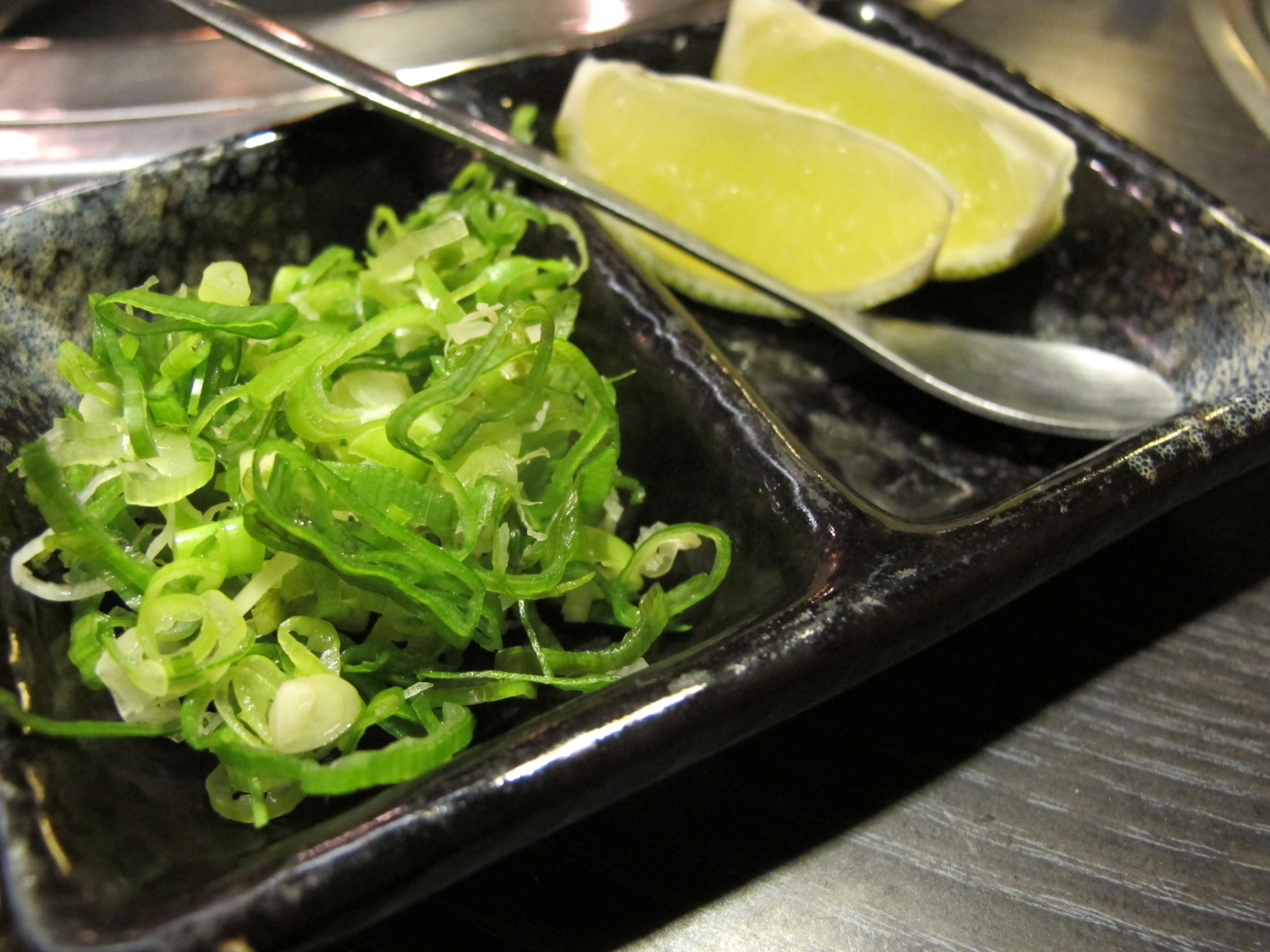 牛舌好吃,七條龍的牛舌是選後段較嫩的部位,一條牛只有四片,所以它是限定品,賣完就沒了,當然其他的肉品也真的都不錯,塊狀的牛肉外表烤的微乾,將肉汁的原味鎖在裡面,就算沒有調味,也覺得能吃出它的美味,有的時候調味反而吃不出牠的肉汁鮮美,而這部分趴趴覺得七條龍好聰明,因為他們的佐料搭配,都是能提味卻不會搶走食材本身的美味,像是檸檬、鹽,口味重的則可以考慮搭配蔥蒜。