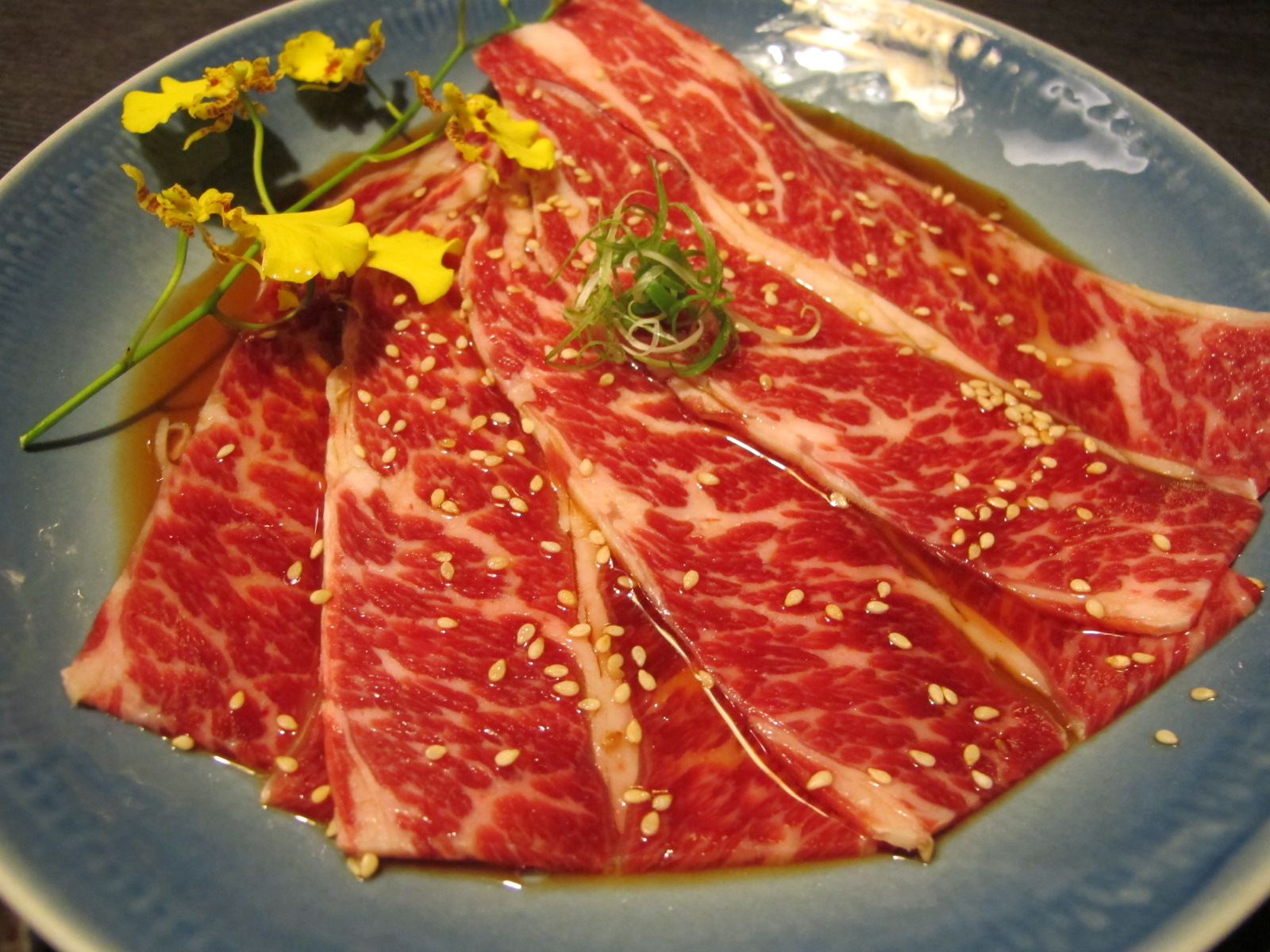 哇哇哇!它不是飲料!是牛肉>///<因為美牛解禁了,這道菜才有機會回到菜單上,真是太感動了!有水果釀的醬汁,牛肉會等到客人點了才放進去,所以要泡個15分鐘讓他入味,烤完入口之後~嘿嘿嘿,難怪它是饕客最愛,大家一定發現這次都沒有什麼熟食照,因為店員一烤好,趴趴就把它吃掉了XDD