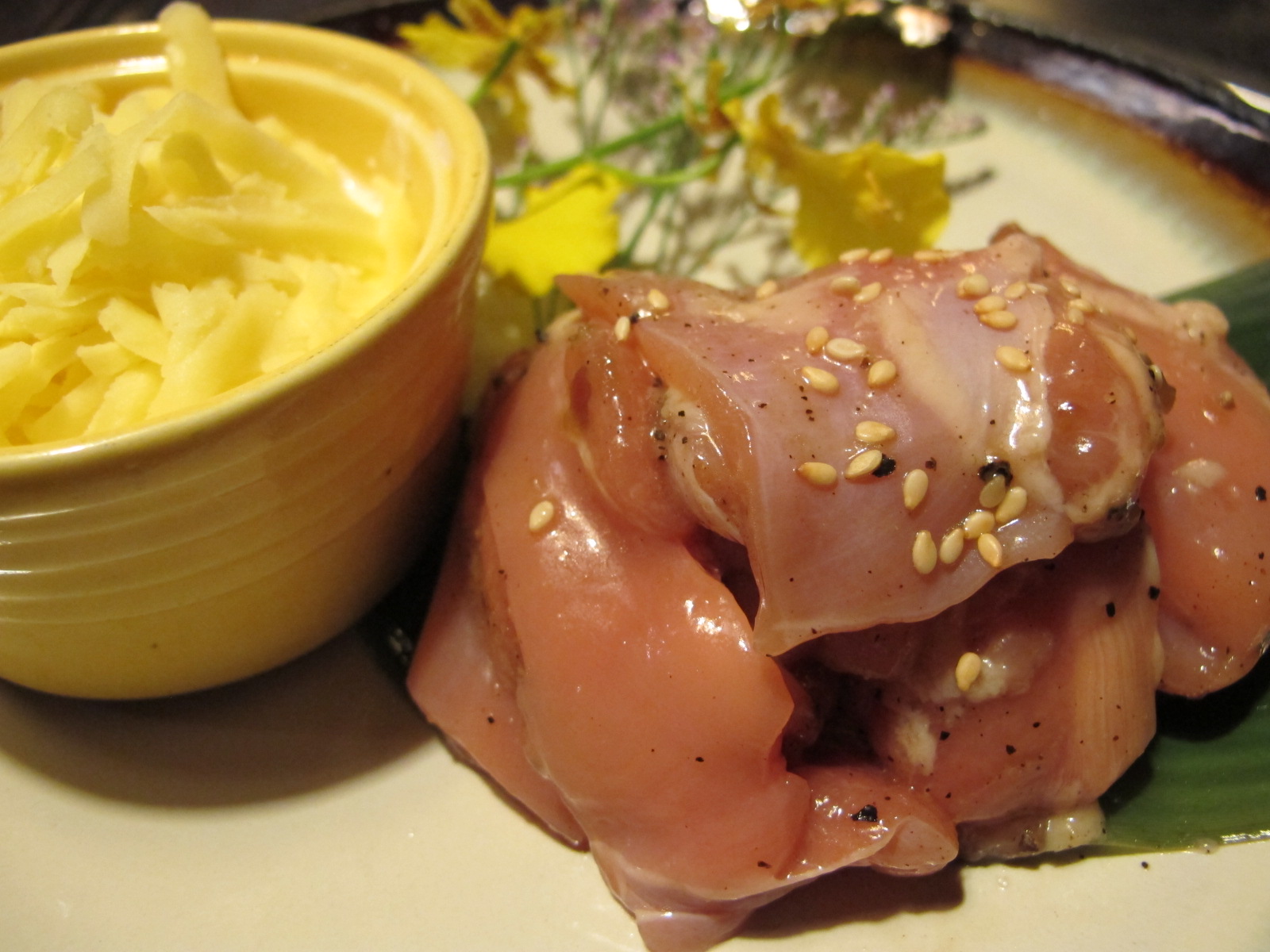 這是道兼顧味覺跟視覺的美食,雞肉的軟嫩、搭配胡椒的香氣,最後淋上濃濃的奶香起司,想來嘗試看看了吧?如果不喜歡奶油起司的朋友,也可以直接吃雞肉,嫩嫩香香的。
