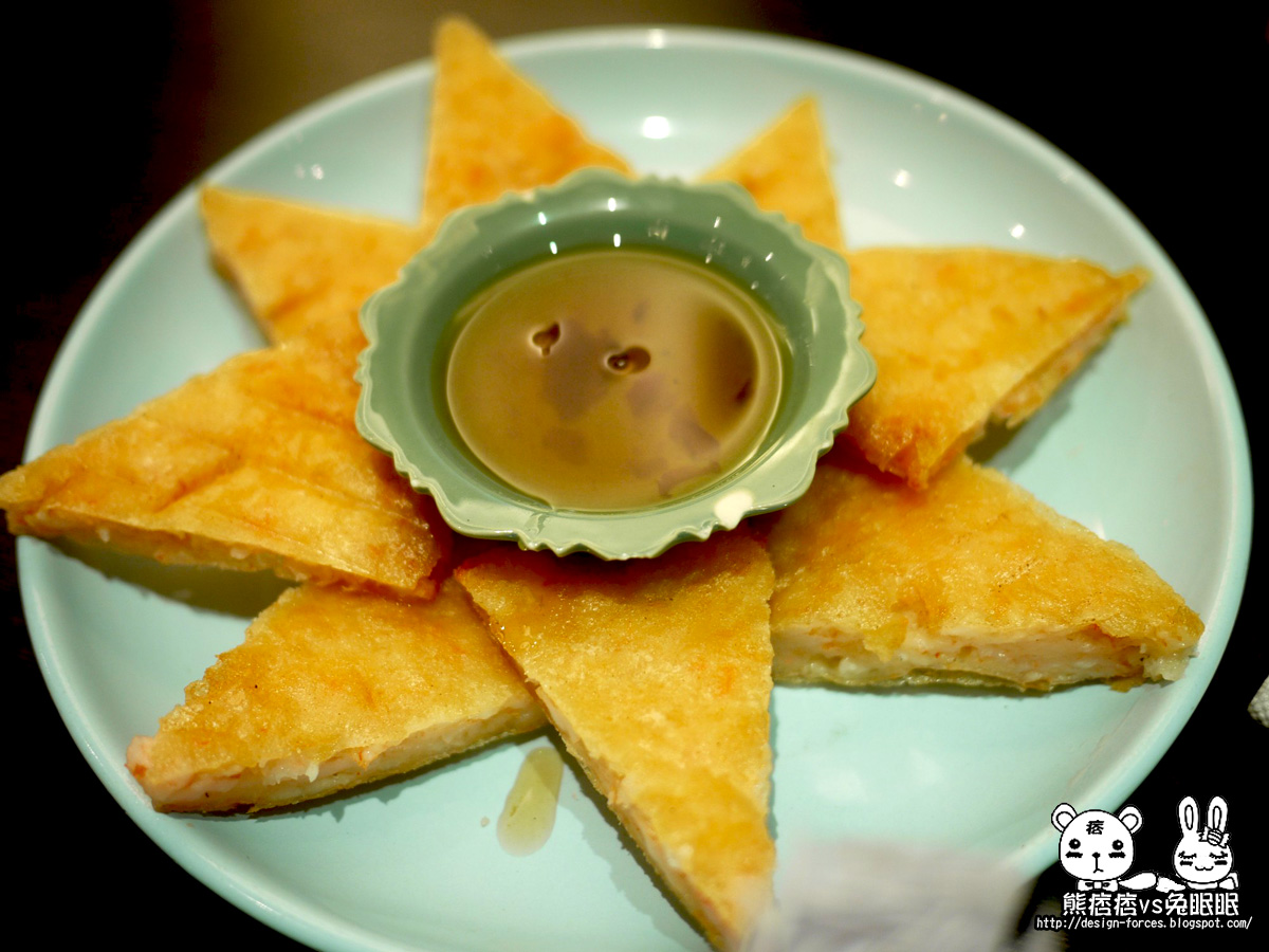 銀湯匙的月亮蝦餅據說頗有名氣,厚度比一般外面賣的還厚一些,整體脆度與彈牙度都很棒,裡面不是純蝦泥餡,好像有混了一些魚漿的感覺,有蝦味但不濃郁,吃這道菜時,要搭配銀湯匙的沾醬,吃起來有些甜甜(蜂蜜吧?)的,與月亮蝦餅搭配起來就是讚!