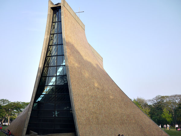 從教堂的側面一看,方方帶著曲線的建築,就像是兩本夾疊在一起的書,頗有人文氣息的。