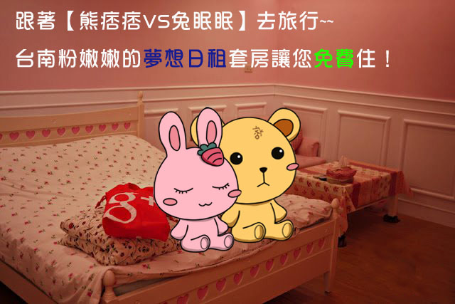 台南夢想日租,是今年七月份熊參加Google+部落客聚會後,從台北衝去台南住的日租之一,後來也跟日租的老闆阿良成為朋友,目前阿良提供夢想日租套房一晚免費住的機會,要送給熊痞痞vs兔眠眠的粉絲們!有興趣的歡迎來參加。