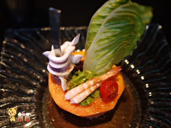 這是海鮮木瓜沙拉,木瓜搭配和風醬汁的部分蠻鮮甜的很好吃,海鮮也不錯,菜的部份則有點不喜歡(可能是熊很少在吃生菜的關係吧)。
