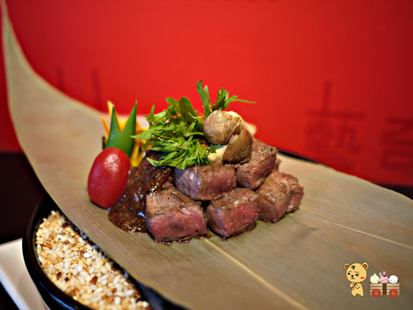 這是熊的主餐-酒粕石燒豚排,一開始服務生會把酒粕倒在石頭上,順間著香氣四散,超級香的!