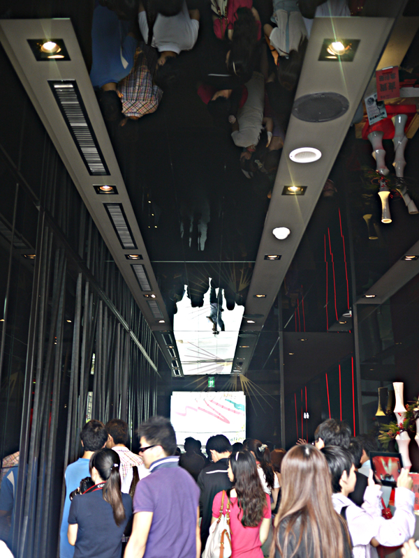 從門口一進去,乾淨反射倒影的天花板,讓人彷彿進入不同的世界,突然覺得這次參加活動的人好多喔。