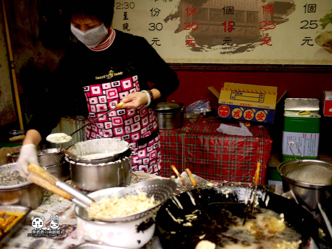 這一家店的食材很新鮮,炸蚵爹的料主要是用高麗菜與多種蔬菜切成小碎丁,並加入新鮮的海蚵,雖然熊痞痞沒有買來拍照,但要特別說的是,這家的海蚵都蠻大顆的,一份25元,如果不敢吃海蚵的朋友,也可以點他們的炸春捲,作法有點雷同,只是沒有海鮮,改用春捲皮去炸,蠻特別的。