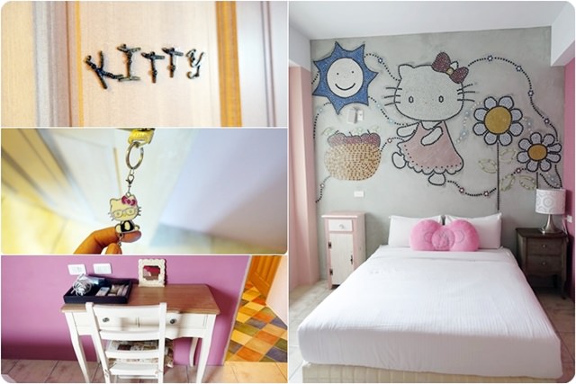 有人是Kitty迷嗎?除了房間是以凱蒂貓命名之外, 鑰匙上面也有凱蒂貓的吊飾,不用擔心拿錯,房間有一個大大的Kitty,床的抱枕是蝴蝶結耶,超級大的蝴蝶結,可當靠枕:)重點是牆壁是粉紅色的,非常適合小女孩。