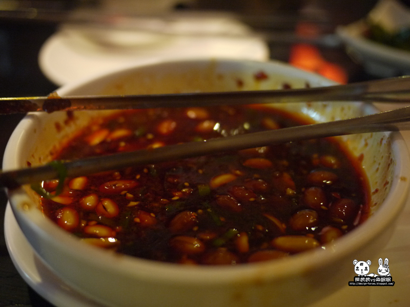 這是一開始餐廳招待的川味涼粉,微酸帶著辣度的口感味道很棒,一下子就被秒殺了,剩下的醬汁,很多人都會拿來沾肉或著搭配白飯吃。