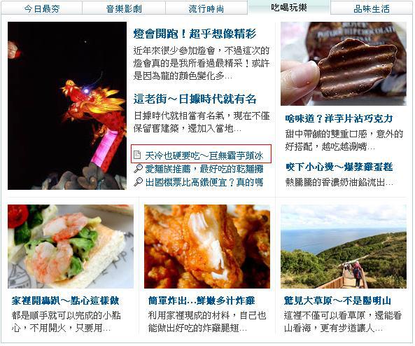上圖這篇為:【2012/2/5】小金門芋頭冰登上奇摩首頁(第22篇)