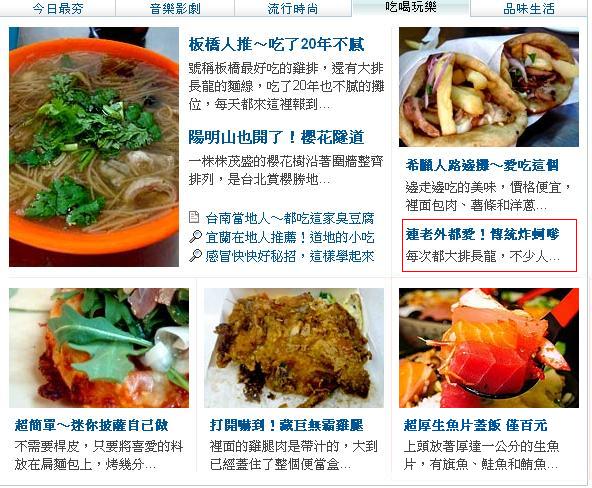 上圖這篇為:【2012/2/12】金門炸蚵嗲登上奇摩首頁(第26篇)