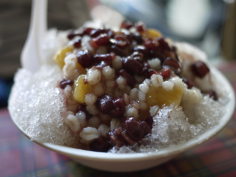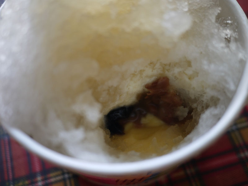 咦 冰淋上的應該是糖水吧? 是一個小的鐵茶壺裝的,應該不是淋香蕉水呀