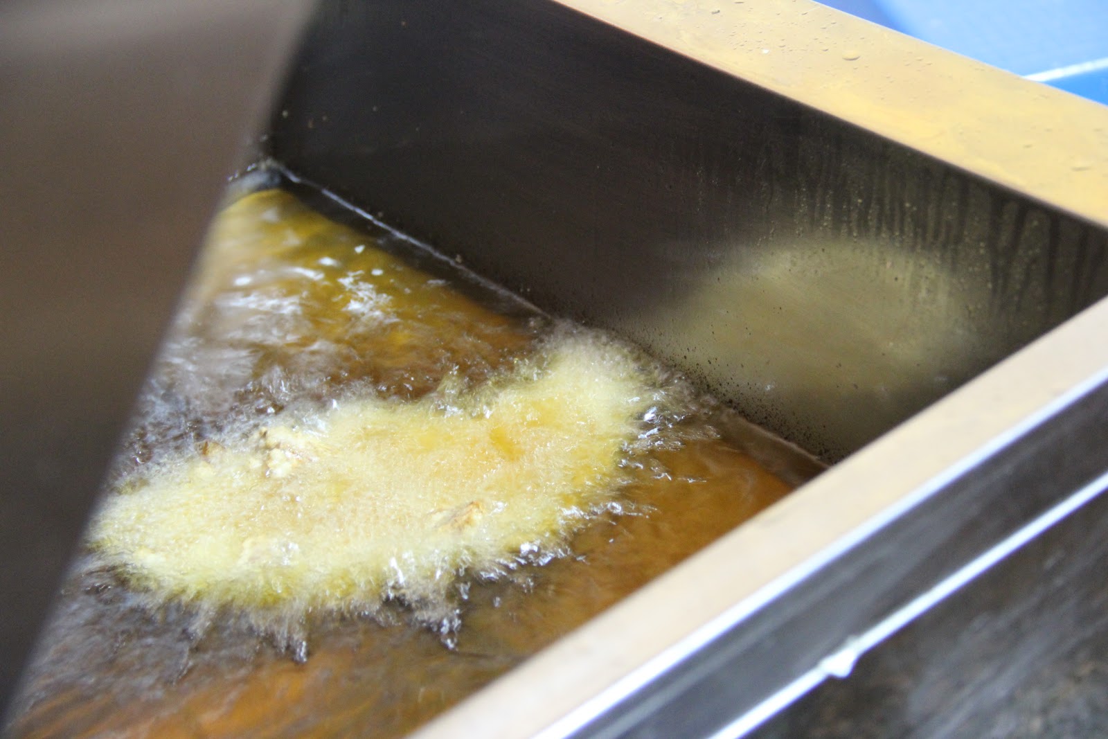 點了一份香雞排後,順勢拍了阿喜雞排的油鍋,油看起來很乾淨清澈,不是放很久的回鍋油,嘿嘿,這是小兔兔我賺到了嗎?