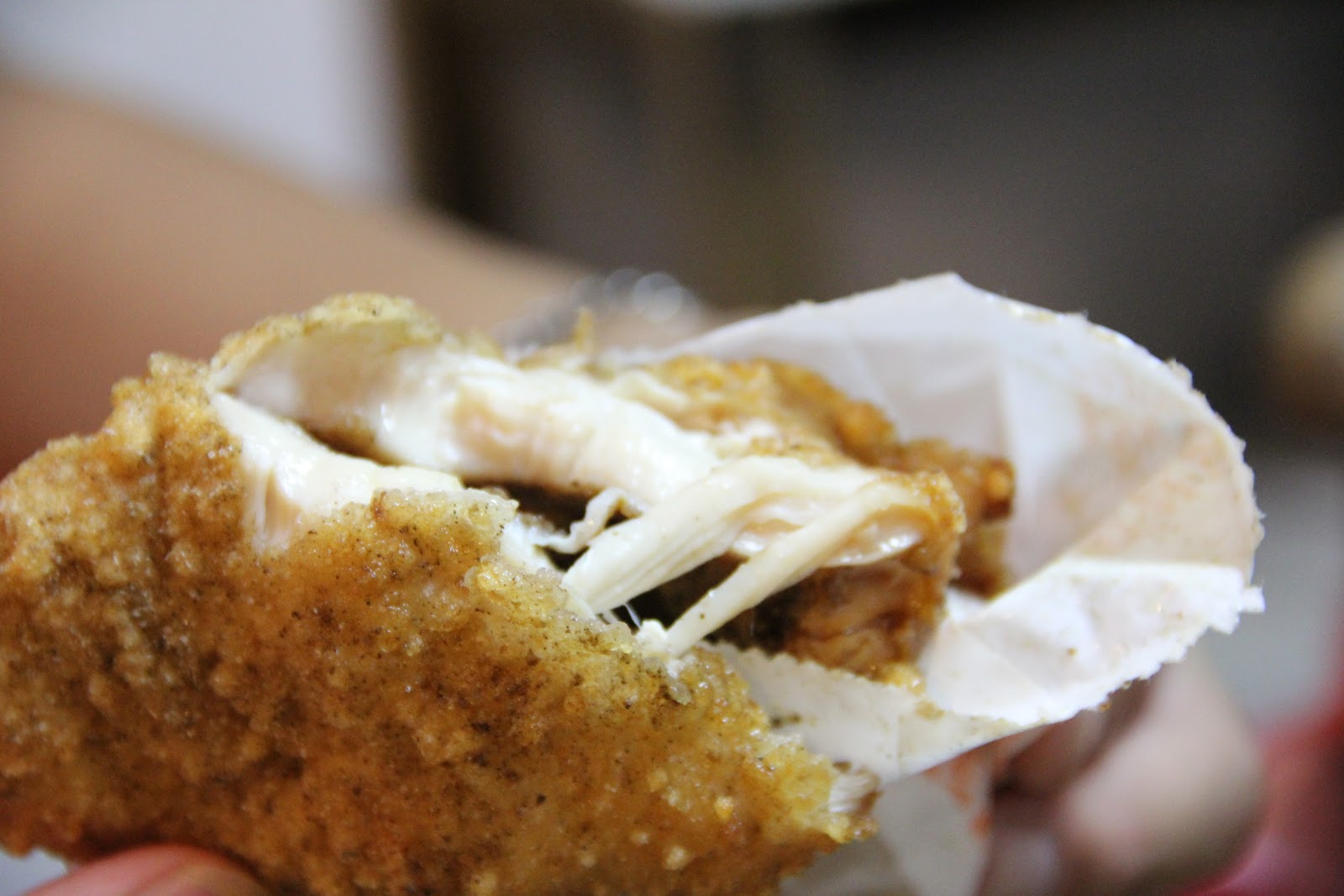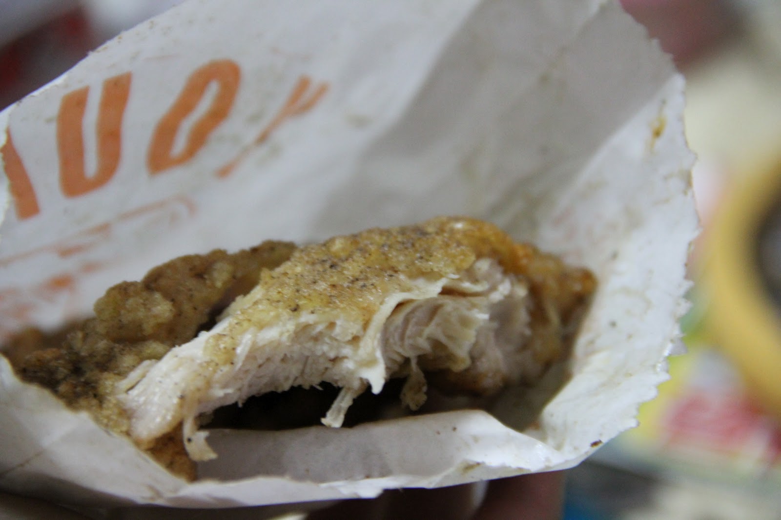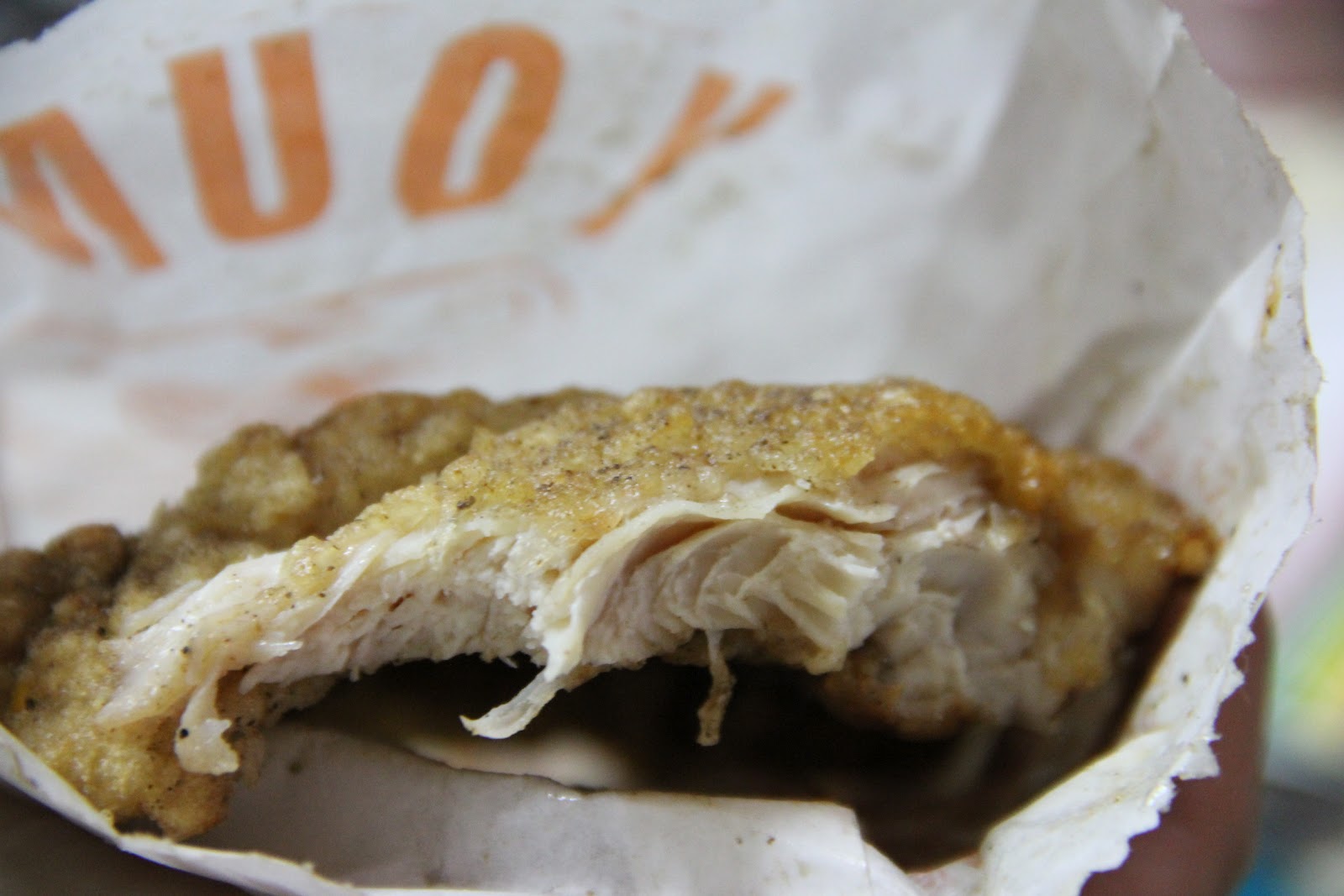 瞧!有看到嗎?皮真的很薄耶,肉蠻厚的,後來兔兔想想,雞排不會飽滿多汁也不會乾的原因,或許是因為油瀝比較乾吧?這樣吃起來也比較健康,不然這一餐吃完後,兔兔也要去跳鄭多燕減肥哩>_<。