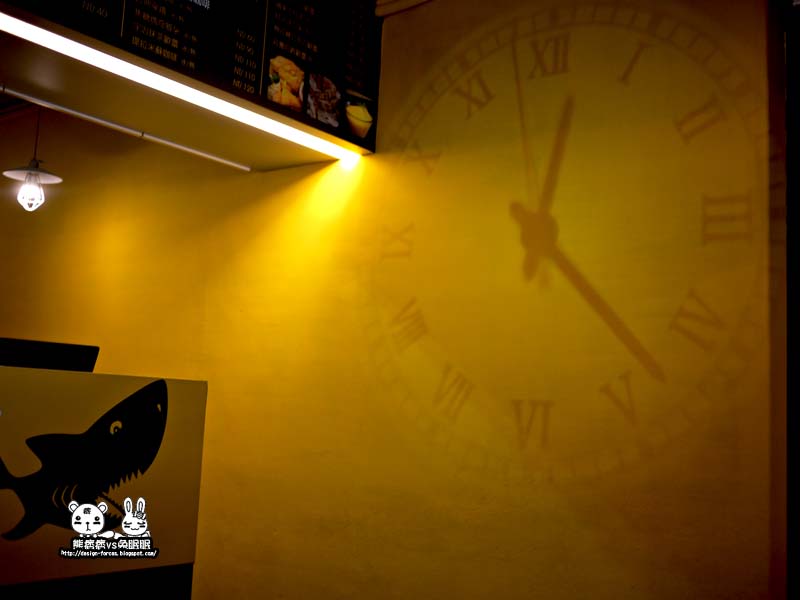 吃到一半時,才發現牆壁上有一個投影的時鐘,蠻特別的,整體吃下來的感覺很讚,兩個人搭配飲料與餐點,大概加起來的價位在400左右,是一家值得再去一次的店,但說真的….排隊真的排很久…來的時候建議要預約唷,不然就要跟【熊痞痞VS兔眠眠】一起去隔壁的7-11報到囉~~哈哈!