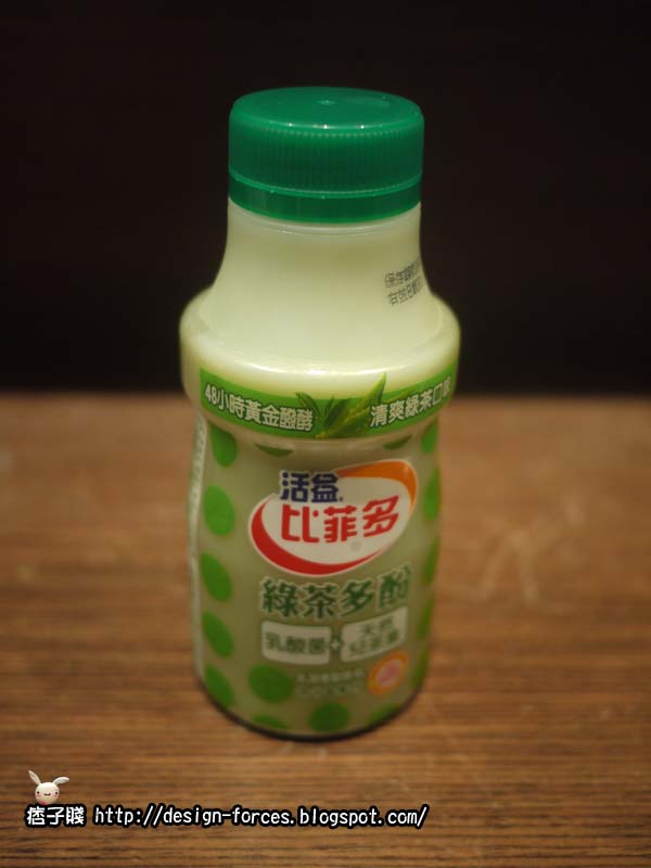 活益比菲多,從原味發展至今,已有眾多口味,今天試喝的為綠茶口味(美食)。