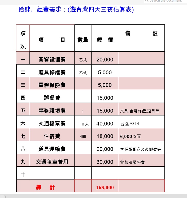 經費需求如上