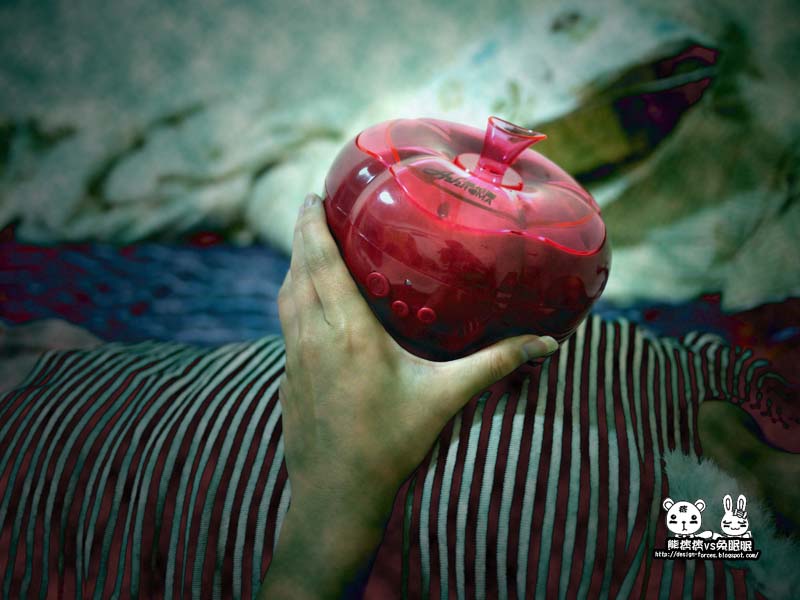 這東西主要是兔眠眠在體驗的,這台機器有搭配精油與水同時使用,很炫的是,當插好電源,一切準備就緒時,他竟然在噴霧了=口=,聞起來的味道,有淡淡的清香,味道還不錯,於是晚上兔眠眠都開著他在睡覺,而且這台機器的機制很棒,裡面是必須加水的,此時很多人就會想?那如果沒水的話怎半?該不會燒掉吧?….不不不~沒這麼誇張啦,一但水位到一定程度時,機器就會逼一聲,自動幫你關掉,聽起來有沒有很炫?實際上真的是這樣呢~~