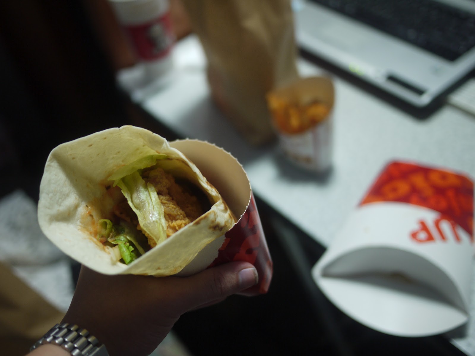 目前主餐加一元就多一份主餐,據說是賣完為止拉,所以熊痞痞點了霸王捲套餐135+1元(套餐內容為:墨西哥沙沙霸王捲*2+薯條+可樂),搭配起來很經濟實惠。