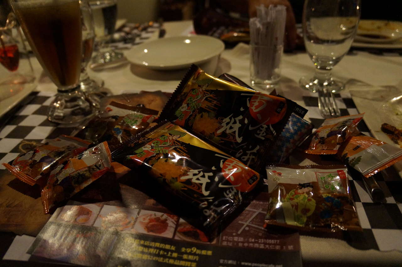 主要的產品為咖啡煎餅、玄米抹茶煎餅與餅黃金紙餅三種,都是採用小小包裝的方式,咖啡煎餅吃起來有咖啡香,並不會甜,咖啡的味道會在嘴巴中殘留一會才散去;玄米抹茶煎餅的抹茶味有些重,餅乾本身則比咖啡的硬些;黃金紙餅本身薄薄一片,有著杏仁果與小麥粉等原料互相搭配,吃起來的杏仁味並不重,微微甜而以,以上為這次參予聚會的所有心得。