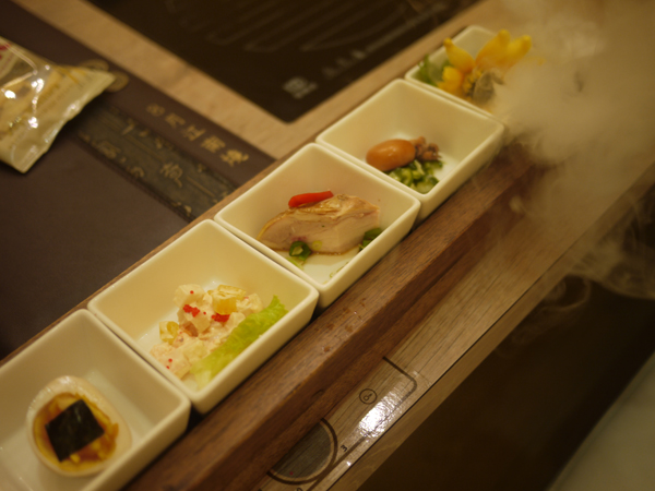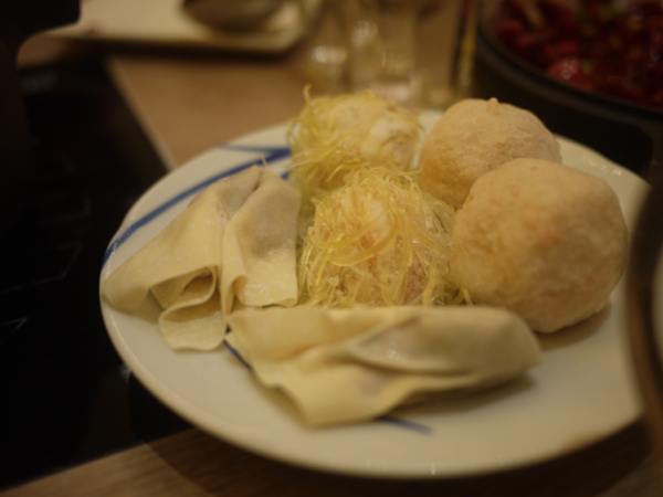 這是店家額外招待的單點,不在正常點餐範圍內,這些都是手工製作的,鮭魚丸有內餡魚蛋,會爆漿,吃的時候要小心,魚翅丸跟松露餛飩吃起來就普普通通。