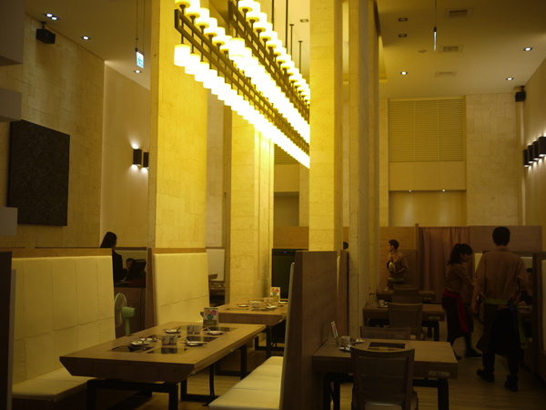 這家店整體的色系偏黃,並將用餐區格成一小區一小區的,對於客人來說,比較有隱私的感覺,而且很適合小團體聚餐,靠近門邊處,還有透明窗可以往外觀看,夜晚時的FU蠻好的。