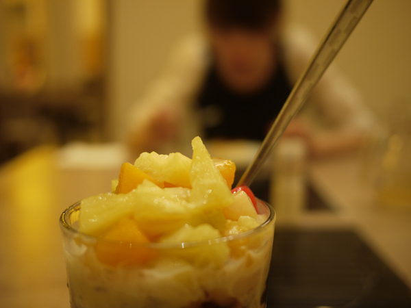 這是熊的烏梅冰,坦白說,我的食量雖大,但吃到這邊就陣亡了,他的冰超大一杯的阿!裡面有滿滿的各種水果相互搭配著,很讚!可惜吃不太下….殘念阿。