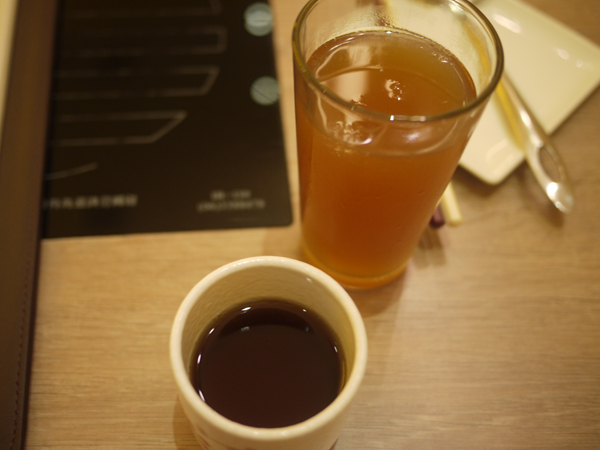 在用餐前,服務人員會先倒一些水讓我們解渴。