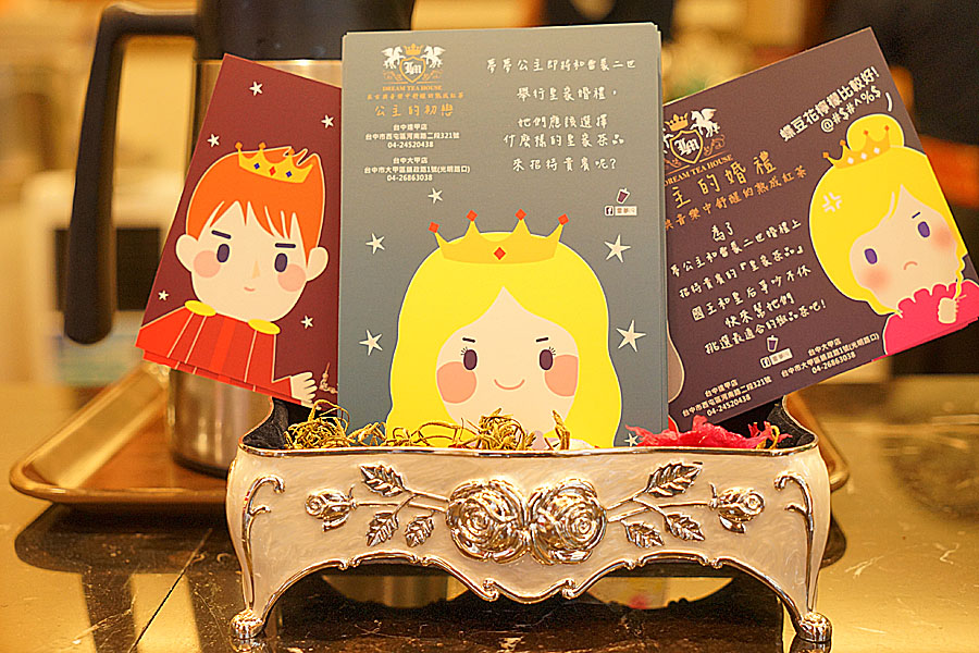 菜單部分結合了店家的品牌概念設計,透過夢夢公主和雷蒙二世的皇家婚禮,去襯托出皇家茶品的形象。