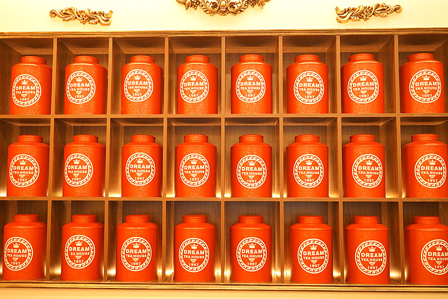 牆面上一罐罐的茶罐,上面還印有年份,這是代表雷夢創立的年份紀念。