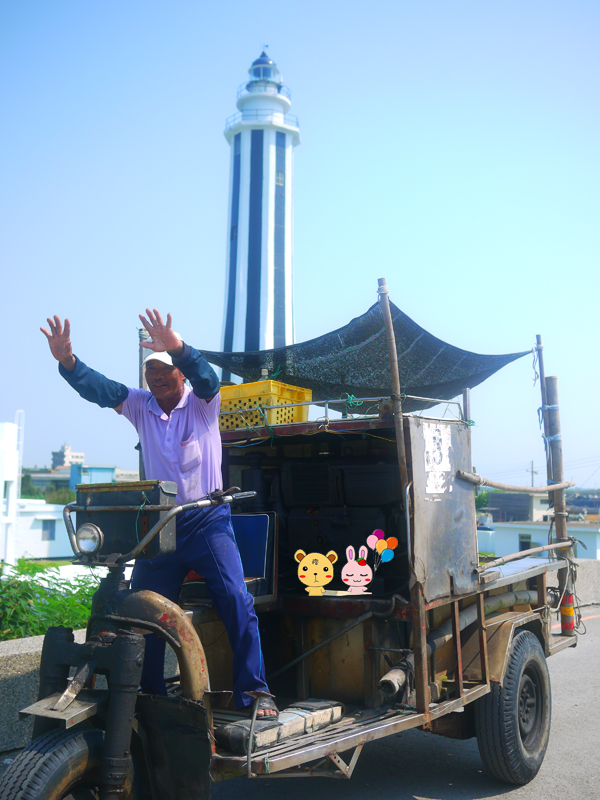 其中,最酷的是這位阿伯,看到我們在拍照,馬上把車子停下來,在那邊跟我們比YA!