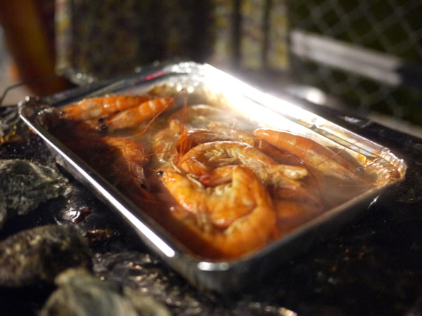 除了大狗包小狗外,這次還學到了另外一種烤法,大家有聽過啤酒蝦嗎?上面這張圖只是把啤酒到出來一起煮而已,但實際上的做法是,直接把啤酒開罐,然後把蝦子泡進去皮酒內,等到啤酒罐整各沸騰後,就可以把蝦子拿出來了吃了。