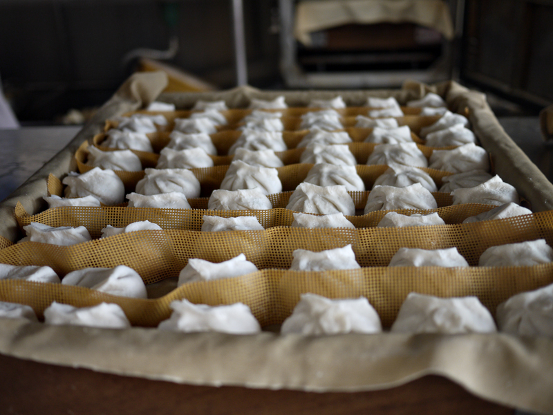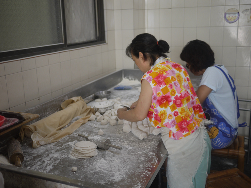 一進去就看到員工在包水晶餃,如果不是特地要來,熊可能會以為,這是自家的人聚會吧….