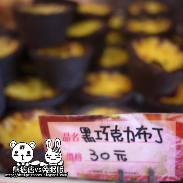 外觀看起來,有點像蛋塔,但卻不是蛋塔,外皮是用巧克力做的,老闆娘都會告訴我們,不要放太久,不然巧克力會軟掉,帶回去如果不吃要放冰箱比較好。