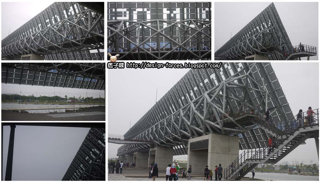 在歷史博物館的旁邊,有著一整排的太陽能電光板,造型十分搶眼,很多人都特地走上去拍照,而且電光板上還有字呢!從遠一點來看,應該是寫上博物館的英文National Museum of Taiwan History。
