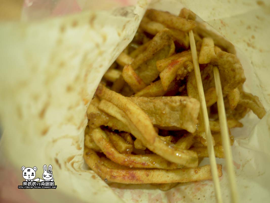 一般點薯條沒人在加沙茶醬的…大概除了這家老店吧- -!這紙袋內的份量是30元的薯條與20元的甜不辣,份量很多,吃一份就會飽了。