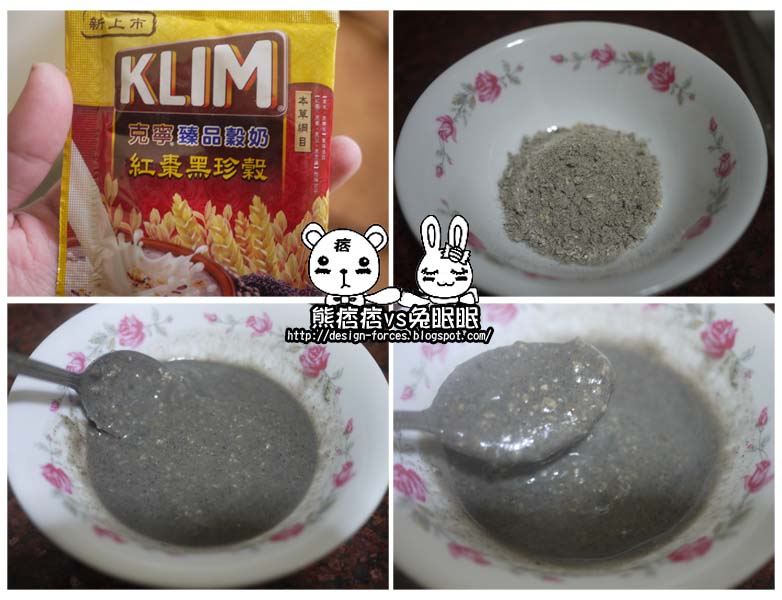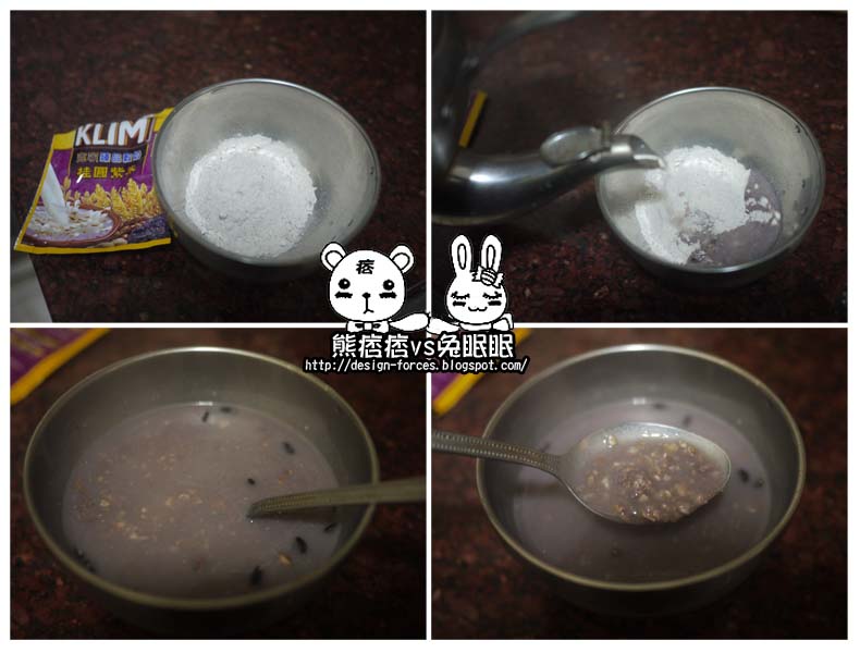 第三包嘗試的是桂圓紫米,打開包裝時,有種芳香的FU…很妙但聞不出是什麼,可能是熊痞痞很少再吃桂圓&紫米的產品吧,一開始的粉末中,看不到黑色的紫米,沒想到熱水一泡就現形!很有驚喜感!喝起來的口感比較糊,有點像是米粥,喝完會有種飽足感,讚!