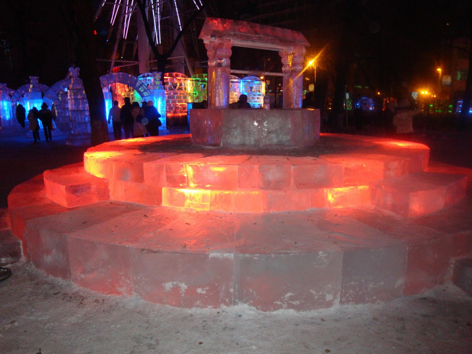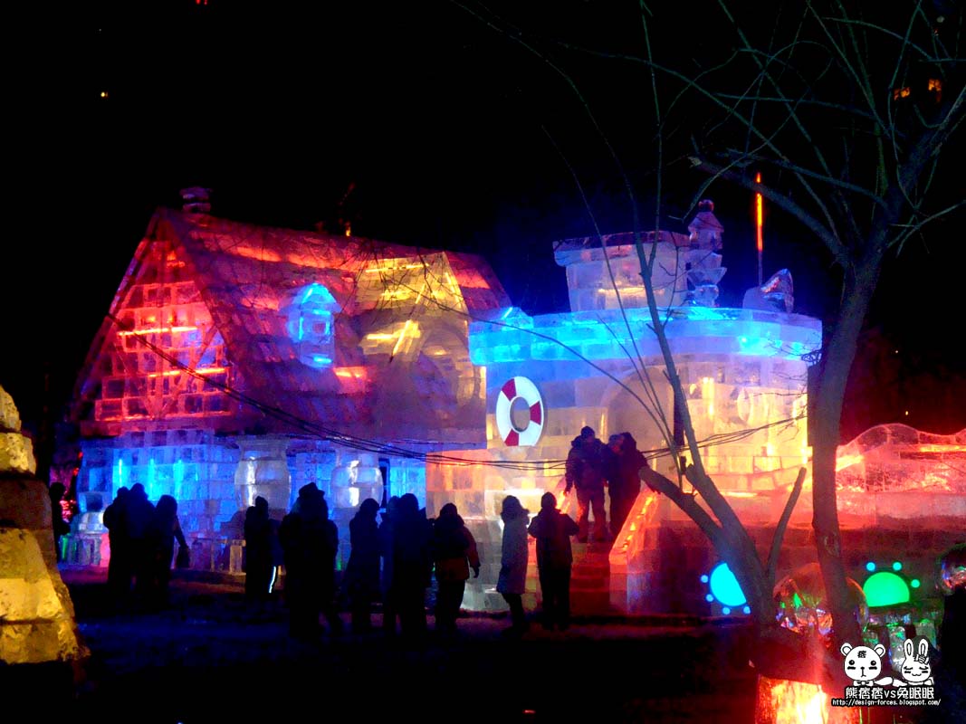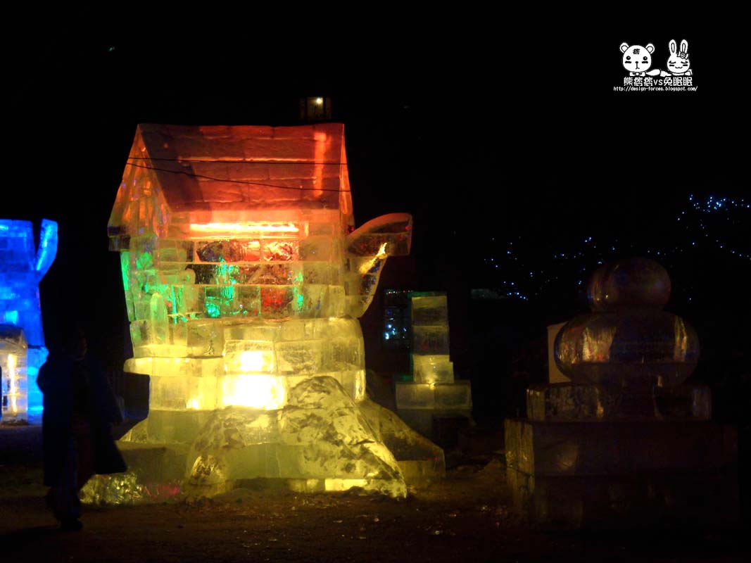 這是一個冰雕作成的古井,旁邊還有一些長方形的座椅,有點像是小龍女修練的冰床…隨行的女生還曾躺下去拍照,根據他的形容,躺下去的瞬間冷到發毛…